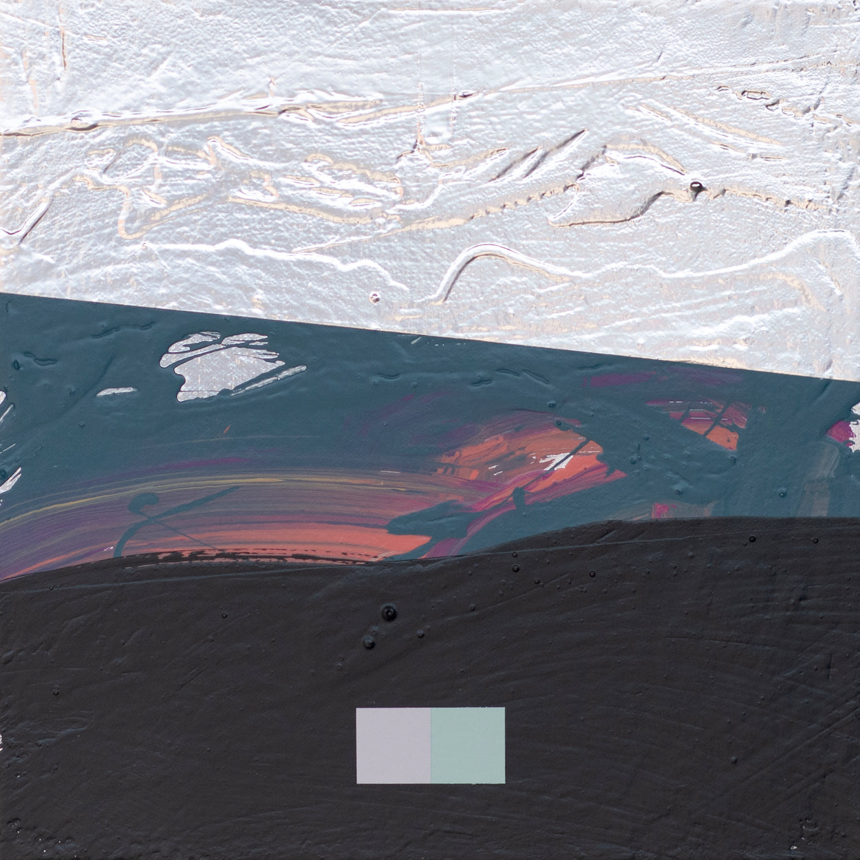 "Meditation Tiles" explore shape, color, and composition at a small scale. These pieces create conversations - the dark and light colors combine to form horizons, stimulating depth for the imagination. The inclusion of bright geometric colors creates a relationship to be explored from a number of lenses.